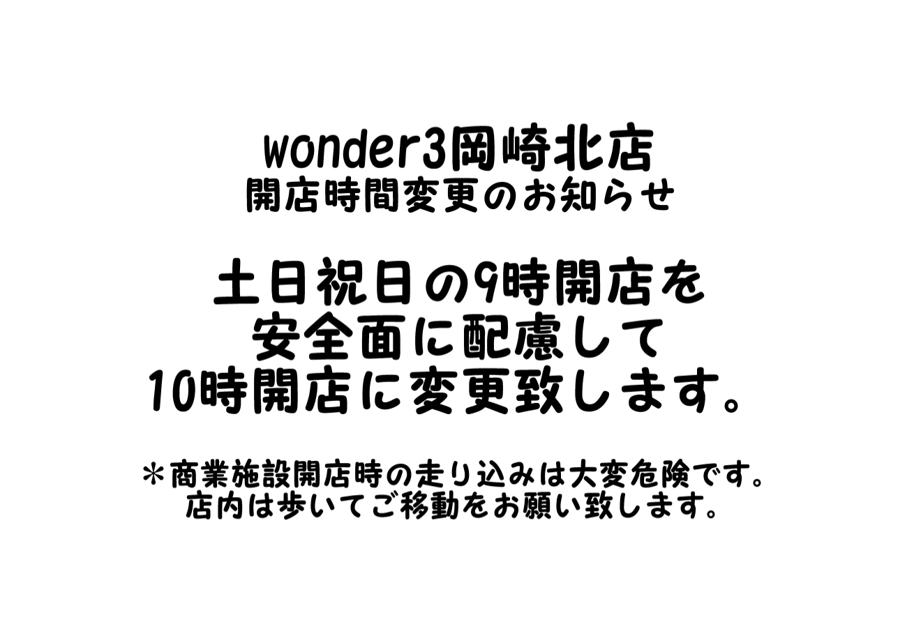 ワンダースリー岡崎北店より緊急で営業時間変更のお知らせです。
